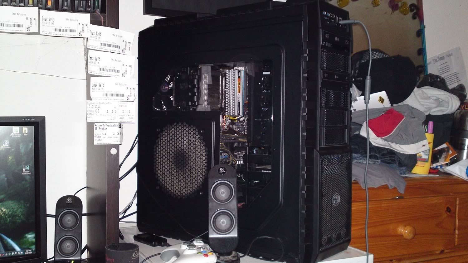 )most recent purchase would be the Acer GD245HQ 120hz monitor and Nvidia 3D vision glasses I bought only this wednesday. (sorry, unlike alot of people on here.. I'm not really a neat freak =P) ![]() ![]() It's cost me a fair bit of money (I don't keep track) but I just enjoy tinkering around with it and love playing games so yeah. I dont own any consoles and have always been an avid PC gamer. Specs: CoolerMaster HAF-X Case Asus M4N98TD Evo AMD Phenom II 965 BE oc'd 3.78ghz CoolerMaster V8 Cpu cooler 2x Palit GTX470's in SLI with onboard mobo GPU dedicated to PhysX 4GB Corsair DDR3 Ram LG Blu-ray drive and DVD Burners roughly 3 terabytes of storage space Acer GD245HQ Monitor Nvidia 3D Vision glasses Logitech G19 k/board " G5 Mouse " G35 Headphones " X-530 Surround Sound " G25 Racing Wheel and pedals " Xtreme 3D Pro Joystick. |