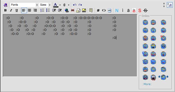 Tried creating some ascii made outta smilies (manually, yes). But apparently the forum didn't like that... but this is how it looked to me